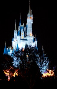 After watching the fireworks with a front-row seat, we left the restaurant and leisurely strolled over to the Magic Kingdom, which was hosting Extra Magic Hours that night. Entering the park after the fireworks was another salmon-upstream experience, however, so I for one was glad to have a bit of wine in my system to soften the blow! Eventually we reached Fantasyland and rode Snow White, which we had somehow missed on both of our previous trips. On a whim we entered the Dumbo queue which looked much shorter than it really was, so we jumped out of that line and figured we’d ride Aladdin’s carpets if we really needed to spin around in the air. We decided to head toward the Haunted Mansion, which we found to be closed, so we headed over to Pirates of the Caribbean and shared a boat row with a man lacking any definition for the idea of personal space.