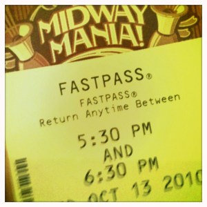 This morning we slept in again, this time until 9:30. We got ready quickly and left for Hollywood Studios around 10am. We figured that if we were lucky, we could power-walk to TSM and manage to snag one of the few remaining Fast Passes for the day, which we did, with a 5:30-6:30pm return time.