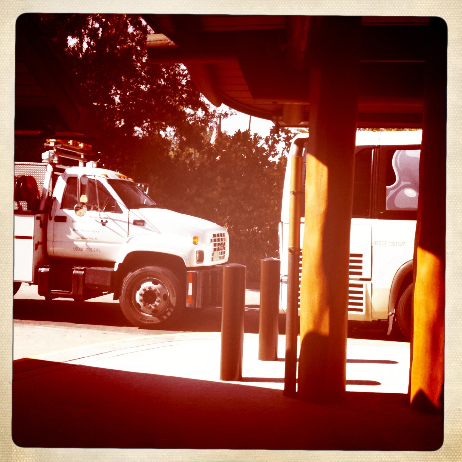 For some reason I was feeling more nervous about this flight than ones on trips past. I had already taken my mother’s little helper, but was still feeling it. Boarding the plane, I took a deep breath, and settled into my customary window seat a row or two behind the wing, the same place we sit just about every time we fly JetBlue. I should also mention that JetBlue is a MACHINE – they de-planed the flight before us, cleaned the plane, and boarded us within minutes, and thus we were ready to depart ahead of schedule. Take-off was fairly bumpy and I will certainly admit that I had a white-knuckled grip on the armrests; even CP admitted later that it wasn’t one of her favorite take-offs, either, and she loves to fly. After a few minutes, however, things settled down, and I was able to watch tv and doze until we began our descent into Orlando. It turned out to be a lovely flight; even the infant seated across from us slept peacefully the entire trip and didn’t make a peep.