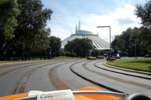 I think the heat and walking of our trip, coupled with CP’s cold, left her (and me!) feeling pretty tired by this point. Instead of heading right out to a park, we decided to lay low and watch some tv, and left for the Magic Kingdom around noon. After another long, chaotic bus ride, we headed down Main Street to Fantasyland, where we grabbed Fast Passes for Peter Pan, and then headed to Tomorrowland to ride…the Speedway.