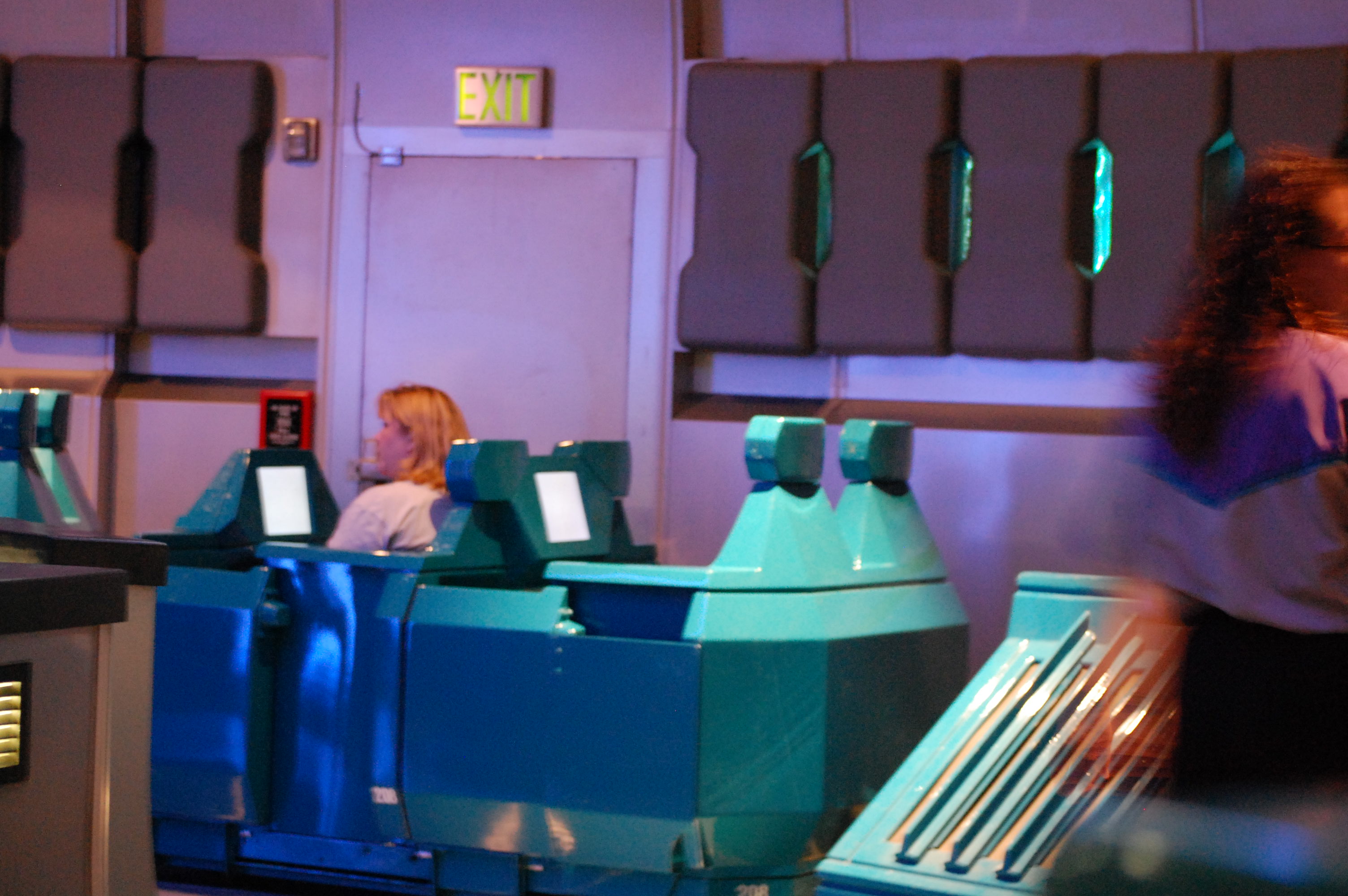 and then walk to Test Track to see what the single rider line looks like. Happily we discover the standby line is only 5 minutes, so we enjoy riding together in a car with a gaggle of happily screaming teenage girls. Afterward, we took a bathroom break in the sadly deserted Odyssey building, and then hoofed it to Soarin’.