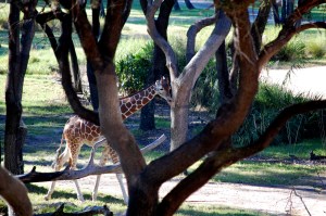 Once back at AKL we take a whirlwind tour of the public animal viewing areas, visiting the animals by the Uzima pool, and then the balcony off the sunset lounge in the lobby, and finally at Arusha Rock. Late afternoon most of the animals are out eating their dinner, and it was very peaceful to stroll and watch the animals. I should mention that unless you’re planning to spend many hours a day in your hotel room, you really needn’t book a savannah view room at AKL unless you have some money burning a hole in your pocket. Between the outdoor viewing areas and the glass-walled hallways that face the savannas, you can really see quite a bit in the hotel’s public areas.