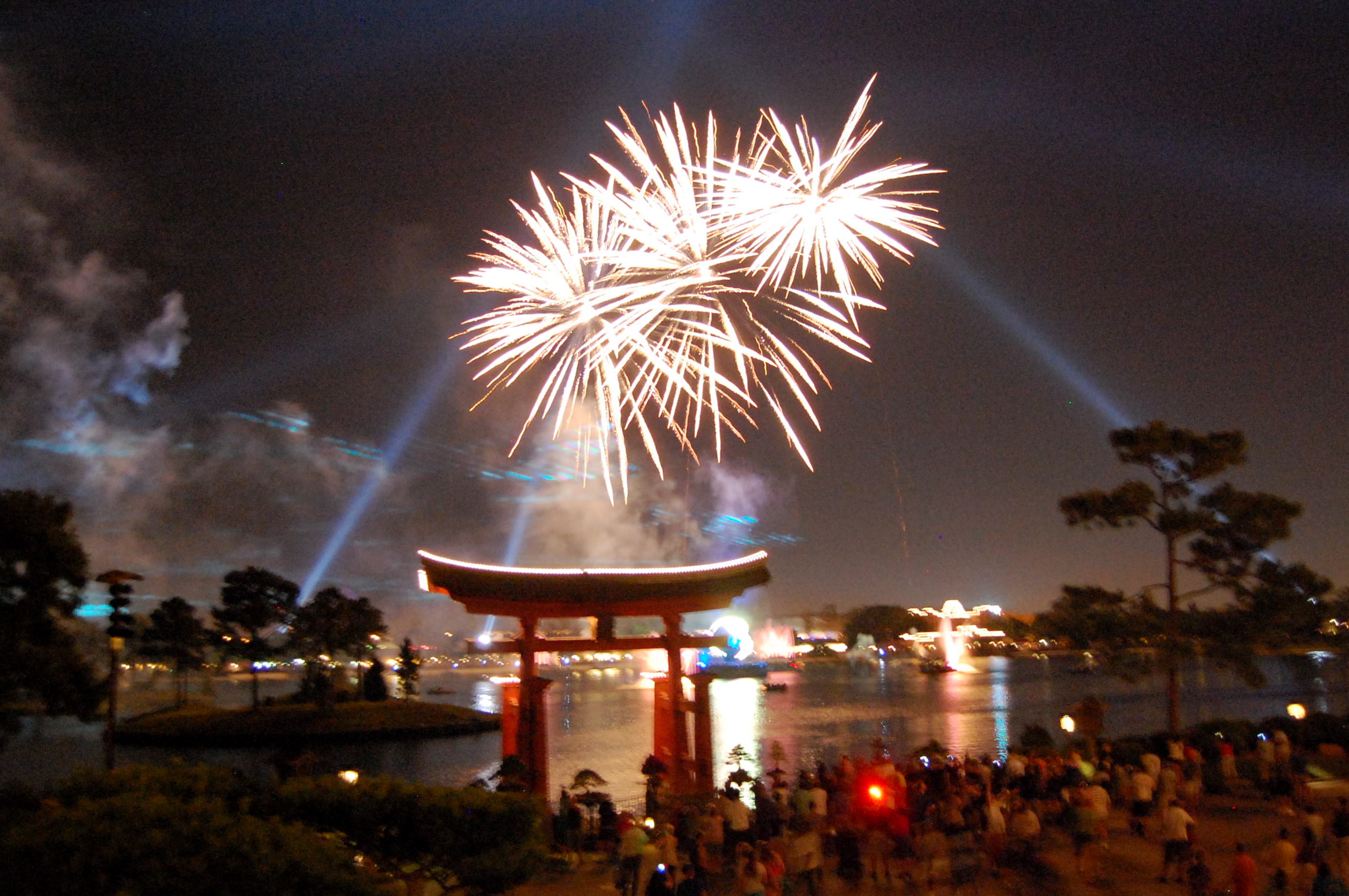 Afterwards, we headed over to Japan for one of our favorite snacks: Kaki Gori. We sat outside the Japanese quick-service restaurant and fought off some wicked brain freeze as we ate. Our sweet tooth satisfied, we headed into the Mitsukoshi Department Store for our traditional souvenir binge. As before we purchased lucky cats and owls, sushi plates to use for mise en place when we cook, an adorable stuffed Totoro for CP, and – my favorite find of this trip – a beautiful spring scarf that goes with most everything I wear and that is a terrific reminder of our trip. Several bags in hand, we climbed to the top of the Japan pavilion outside of Teppan Edo to stake out a spot for IllumiNations. The show was wonderful as always, save the loud cell phone conversation had by the woman standing next to us about all things gross and medical – really, is there not a better time you could talk about catheters?