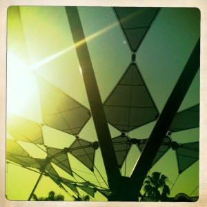 By this time it was almost 11:15, so we headed back to Soarin’ and were in the Fast Pass return line at 11:18am exactly. I was relieved to find the wait was less than 15 minutes, and yet again we were assigned the prime real estate of the top row of the center glider without asking. Once off, it was roughly 11:45 and we felt like we had done enough to warrant a mid-day break (to say nothing of a caffeine infusion, since we hadn’t done that yet that morning). We got back to the Camry, headed to Celebration, and sought out the first Starbucks we could find. I delighted when I found a perfect parallel parking spot right in front of Starbucks, but couldn’t figure out why the space seemed so small. After some careful maneuvering I angled the Camry in, and then realized…I was parked in a parking spot for GOLF CARTS. Welcome to Celebration!