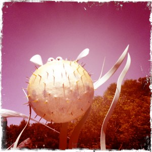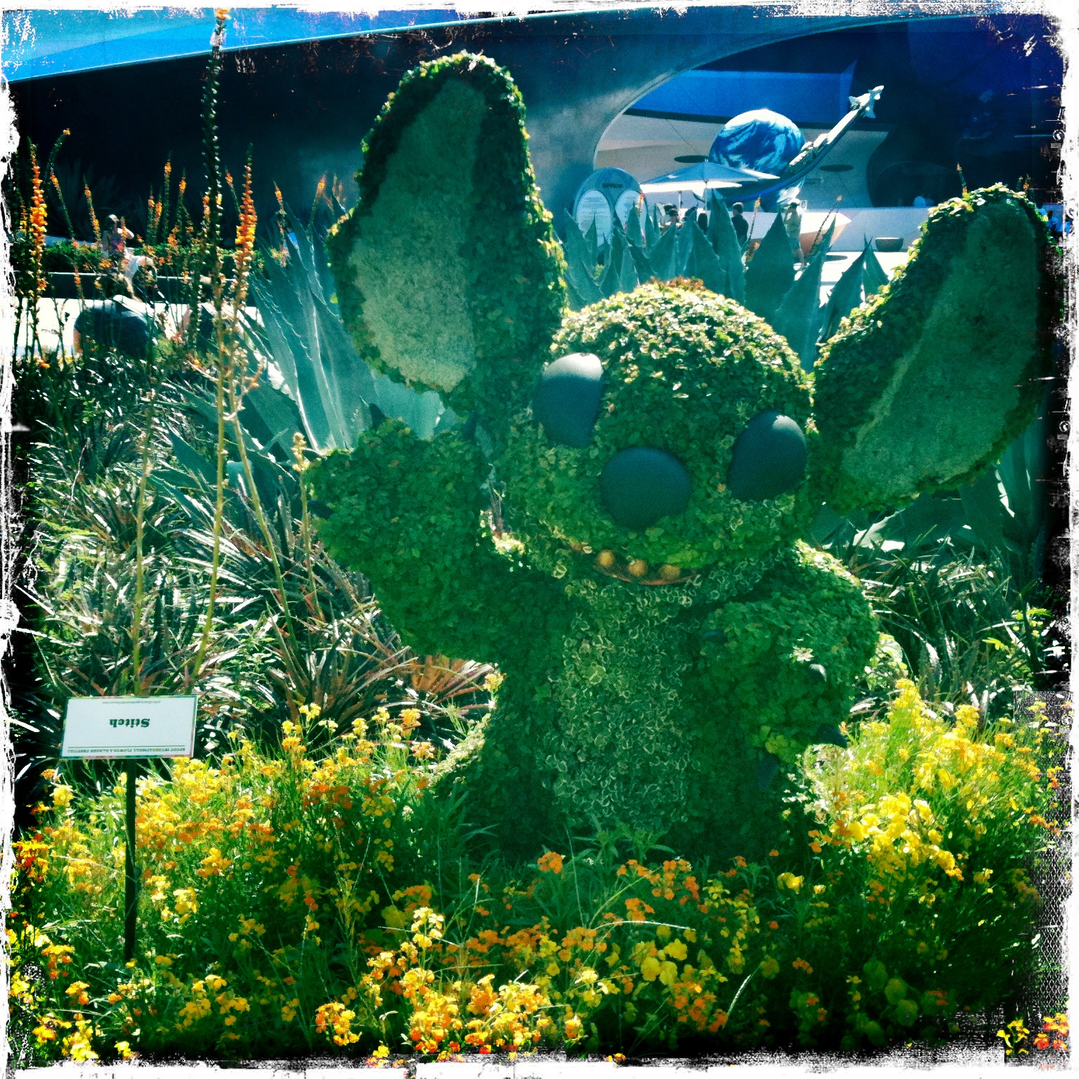 After Mission Space, we grabbed a shaded bench by the Stitch topiary and checked our e-mail, drank some water, and watched the people strolling by. Once our feet felt sufficiently rested, we walked over to Club Cool for my favorite Mezzo Mix (dear Coca-Cola: if you are reading this, could you please, please PLEASE offer this fantastic drink in the States? I’d singlehandedly make it a profitable venture for you.) and other Coke samples. Afterwards we strolled over to The Seas with Nemo and Friends, not so much to ride it (another once is enough each trip ride for us), but to delight in the “Mine! Mine! Mine!” seagulls and take some pictures.