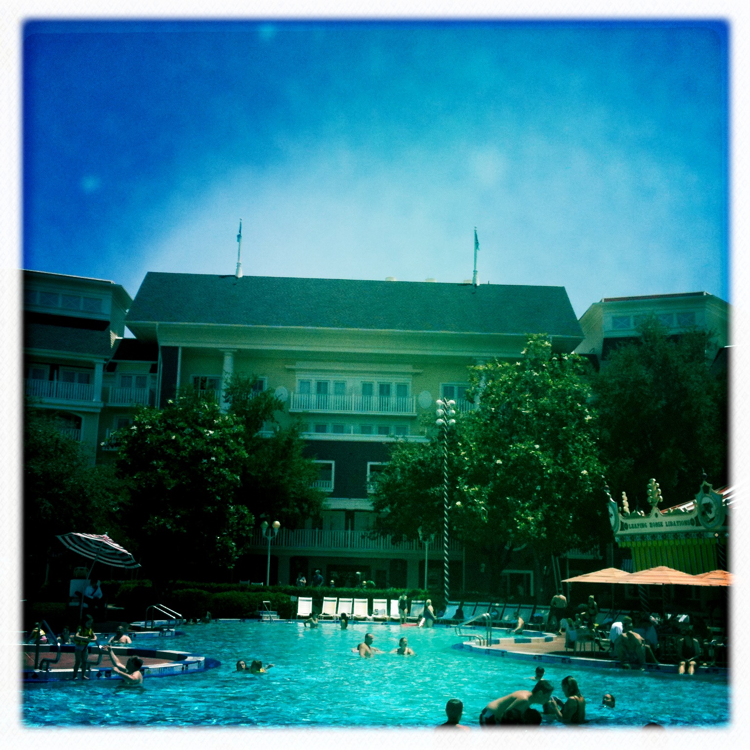 We slept in this morning until the late hour of 7:15, and like the day before, we ate breakfast in the room (this time accompanied by some Starbucks Double Shots to give us some caffeine), dressed, and were out the door by 8:10am. Unlike yesterday, however, we decided not to drive or take a boat, and instead walked to Hollywood Studios. We waved to the passing Friendship boats, enjoyed watching the ducks with their babies, and raised our eyebrows at the passing joggers who looked far too tired and sweaty to truly be enjoying their hot morning runs.