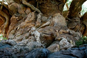We returned to the Caribe Royale, ate our breakfast, packed up, and headed out around 10:30. Our first stop? Disney’s Animal Kingdom, a park we hadn’t visited since our October trip in 2010. We parked in row 36 and trammed ourselves to the front, enjoying the warm breeze and the feelings of anticipation. Not in any particular rush, we ambled through the front of the park, me snapping pictures all the while, and headed toward Expedition Everest. We had a great ride in row 16, and then decided to walk back toward the front of the park, back to the Tree of Life. Since before our October trip I had intended to find the “hidden” trails that circle the Tree, and this time we were successful, finding an entrance to the trails near the exit of It’s Tough to be a Bug. We spent a good 30-45 minutes walking and taking photos, enjoying the hidden enclaves and waterfalls and the relative quiet you don’t normally find within a theme park.