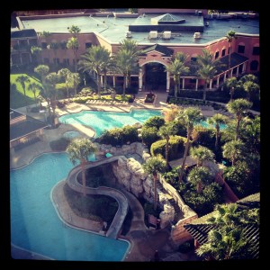 In any case, we park and check in. Before the trip I had asked my grandmother to make a request on our reservation for a villa close to the Hospitality House so that we could be close to buses, food, and activities. She apparently didn’t do this, because we were assigned to room 5430, a third-floor villa near the South Point bus stop. The South Point bus stop also happens to be perhaps the furthest located stop from the main building, so I don’t think we could have been located any further from the front. Ah, well. We had a car, so we’d manage, and it turned out to be a lovely and quiet location.