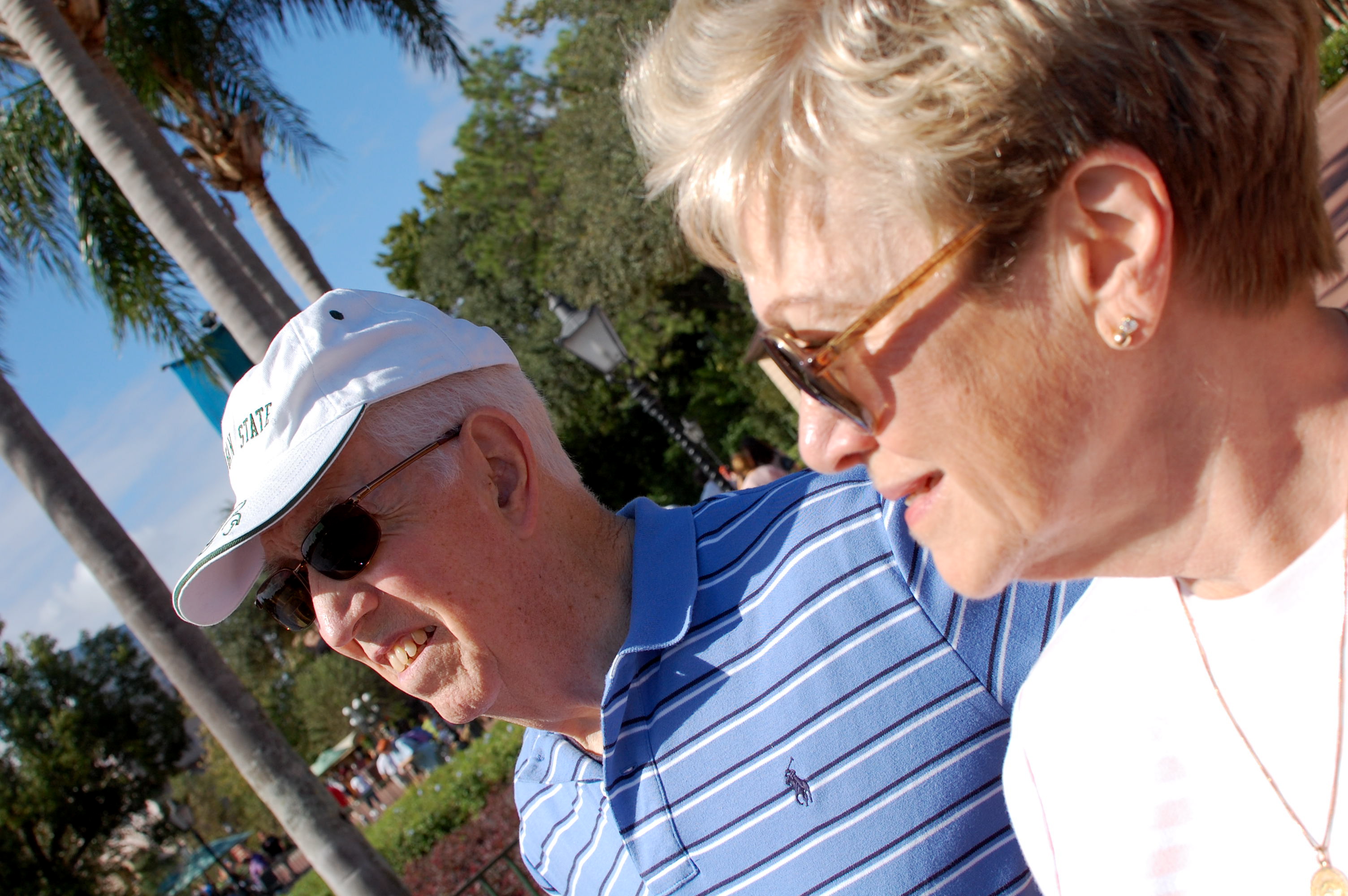 On tap today at Epcot is a lunch my grandparents requested. They love, love, love Les Chefs de France, so I booked a reservation for all four of us. We park in Discovery 13 and walk in the hot midday sun to