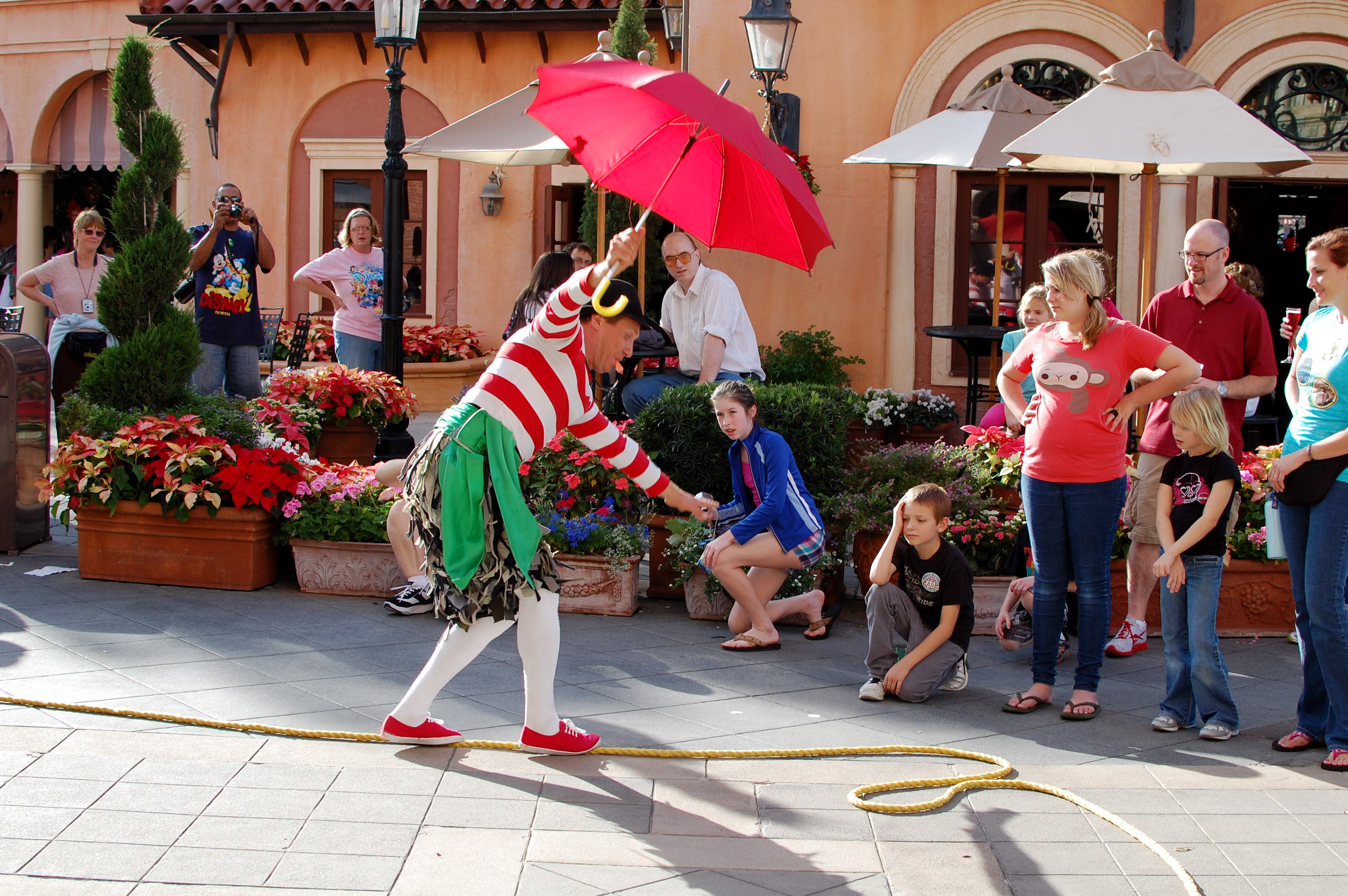 music. Afterwards we all headed to Italy to browse the shops and watch Sergio the mime, and then we boarded the boat from Germany back to Mexico. And there again was Duffy, fanning himself at the International Gateway. By this time we were all tired and full, and walked out back to the car and headed to OKW to rest. One of the best parts of vacation? Consistent afternoon naps!