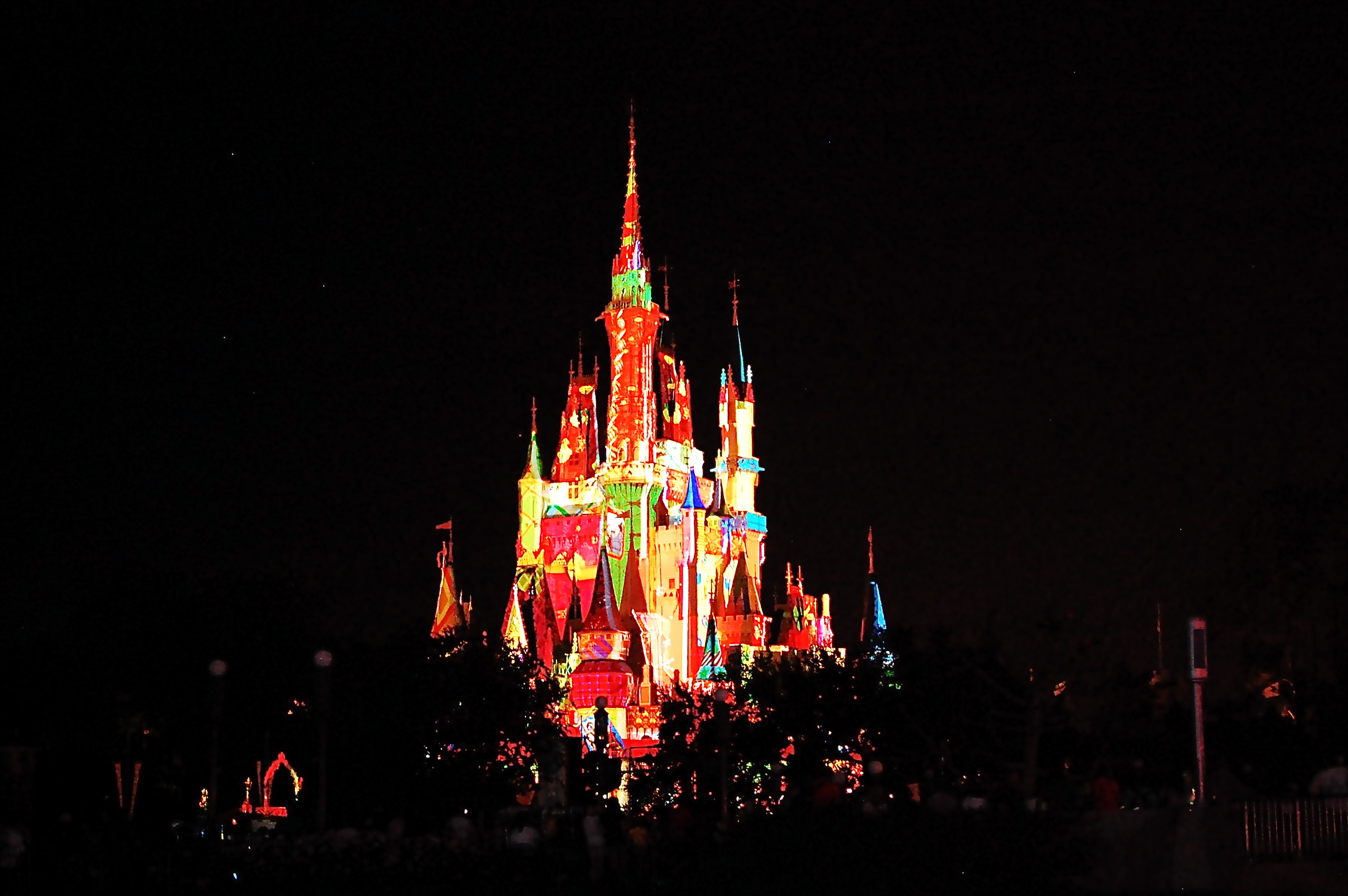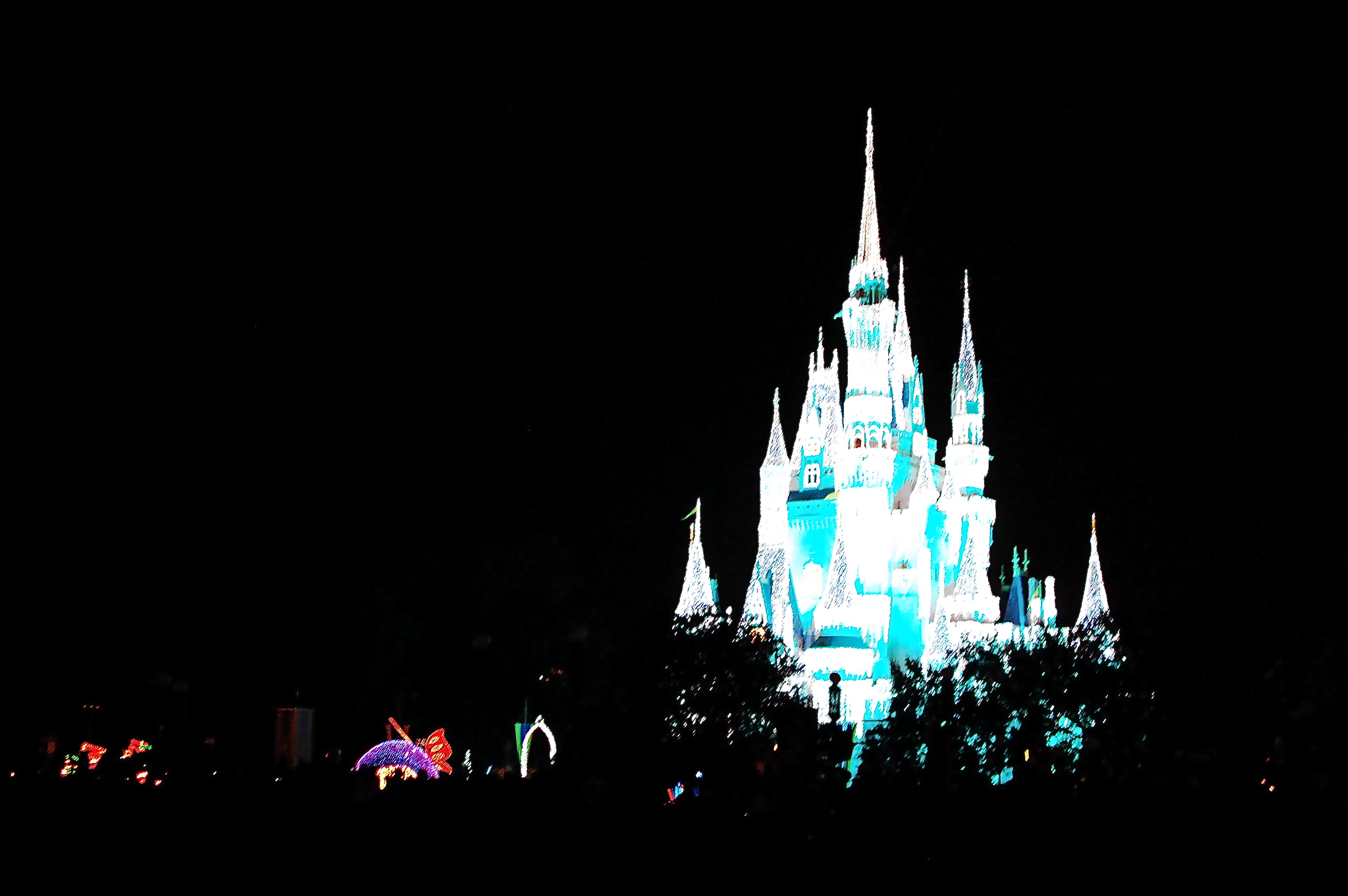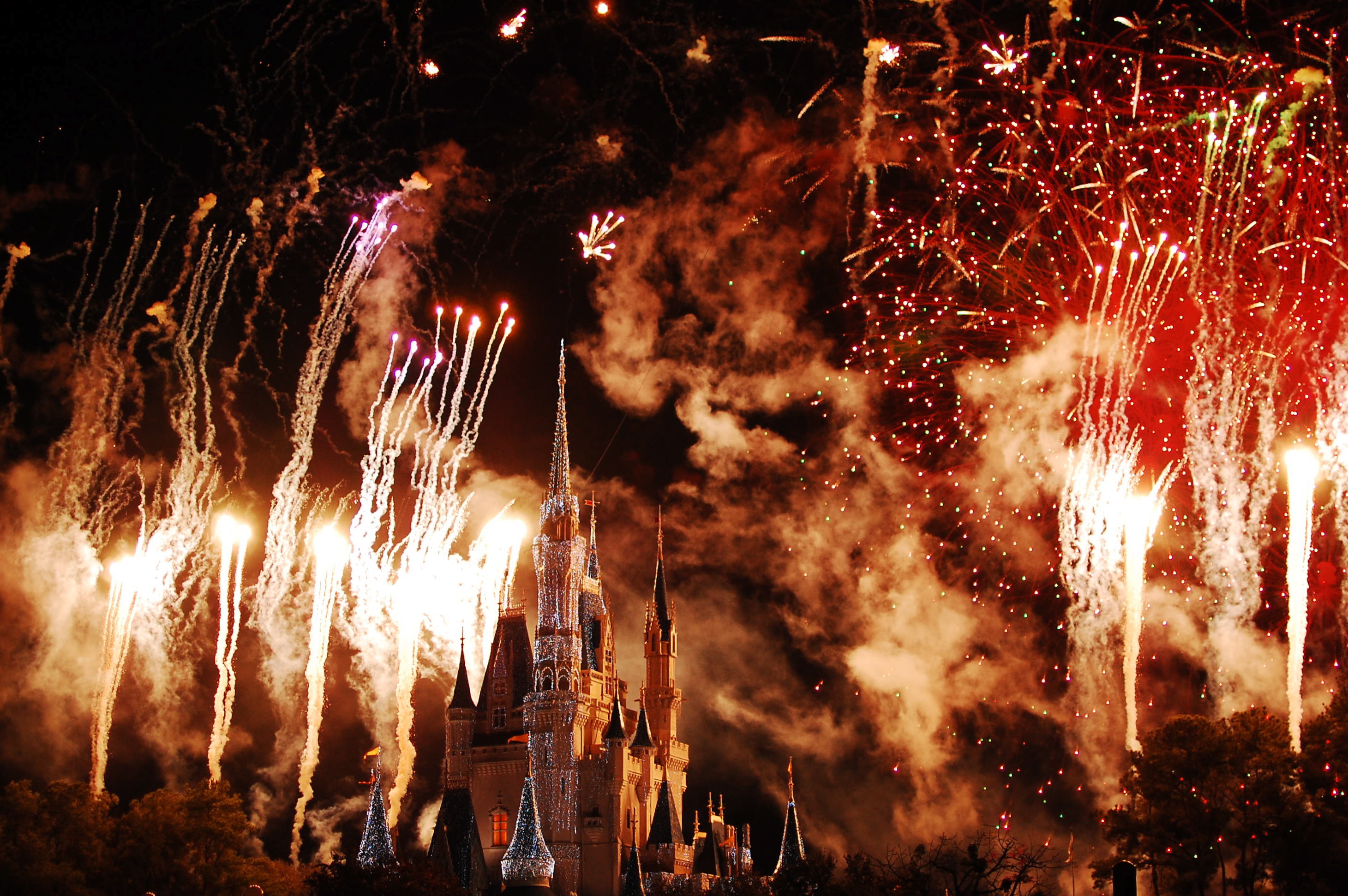 The dessert offerings were pretty decent, if not stellar. Lots of “shooter” style desserts, tiny tartlets, truffles, brownies, and cookies. The tiramisu was quite tasty, so I might have made a few return trips for more of those. In any case, it was lovely to sit and snack and watch the Magic, Memories and You show, which surprised me in its elegance and its technology. We ultimately weren’t able to pull our chairs right up to the railing as I had hoped, but in any case we didn’t experience any pushing or shoving to keep a nice spot right in front. The wind was also blowing away from us, so our view wasn’t obstructed. Would I do the party again? Maybe not, at least not in a peak(er) season. But I’m still glad we did it once. Some of what we saw: