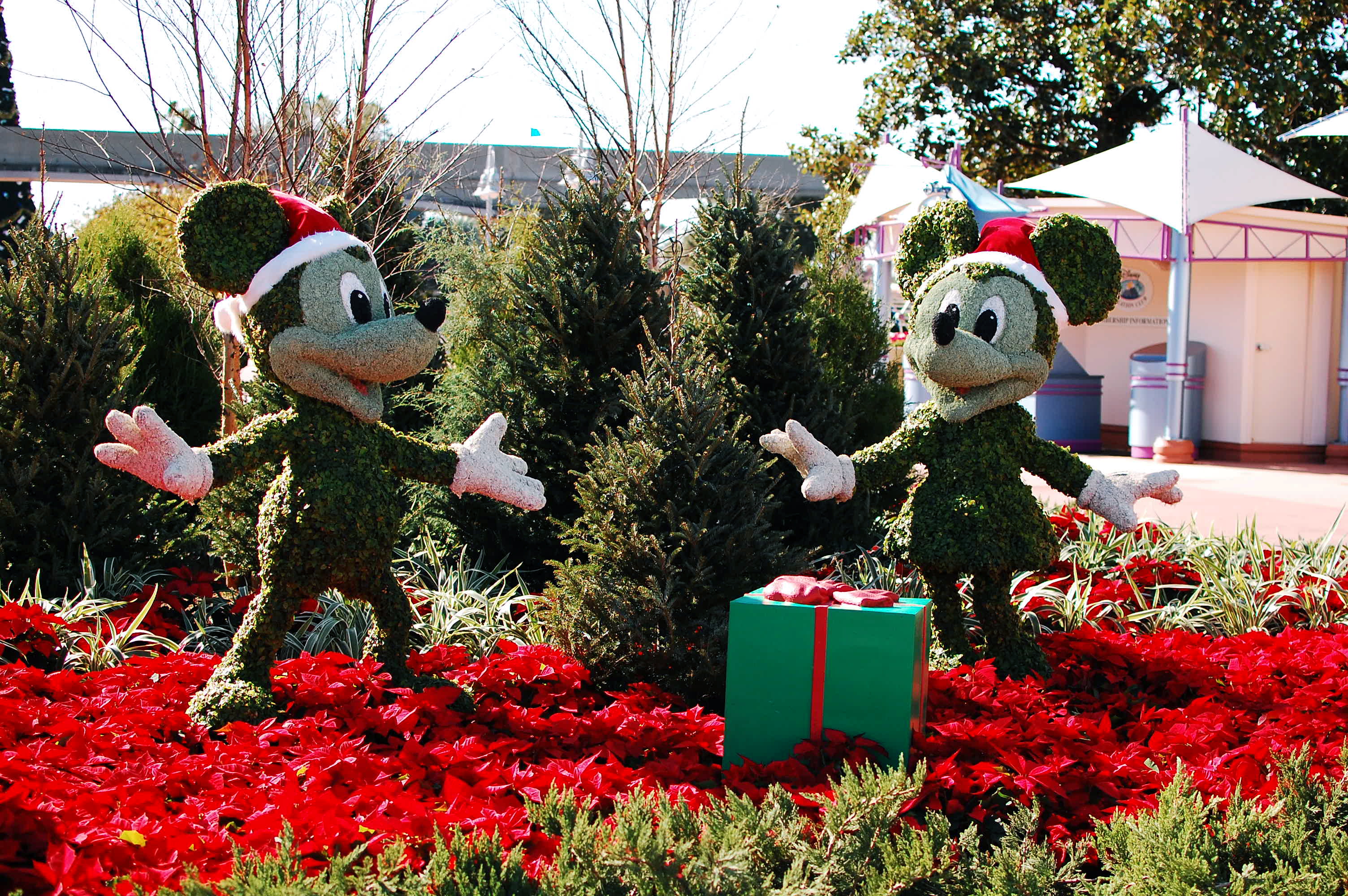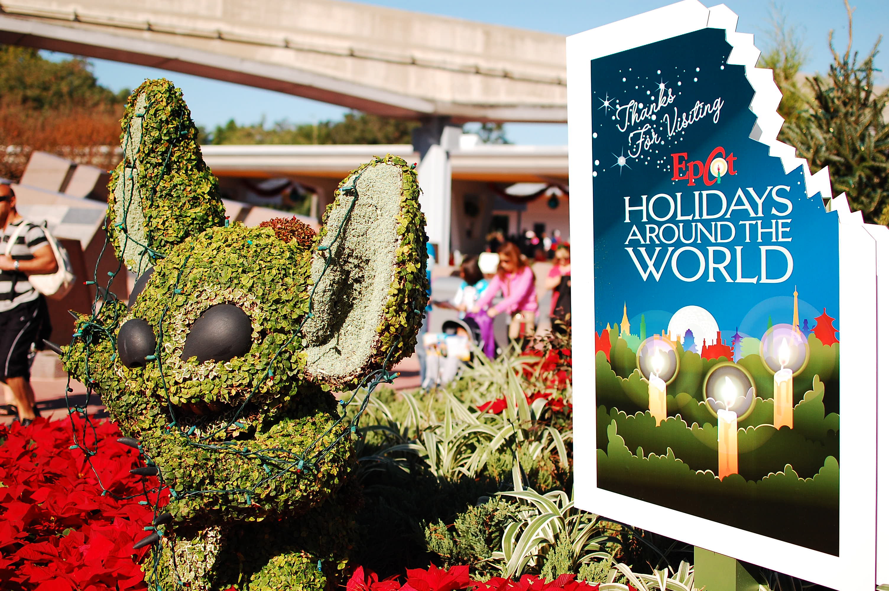 Our plan for this morning was to focus on the World Showcase, so we had about an hour to kill before it opened.  We ambled through FutureWorld, noting topiaries recycled from the Flower and Garden festival, and odd poinsettia trees filled in with some kind of prairie grass. Epcot was the only park we hadn’t yet seen dressed up for Christmas, and it was by far the most disappointing.