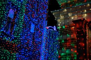 Once at the Studios, we booked it for TSM and were pleased to find a 30 minute (posted) line. Hah, ha. I clocked the wait at 47 minutes, and unlike many previous rides, we weren’t pulled out of line because we were a party of two. While boarding I had a pleasant conversation with a Cast Member from Michigan about my 50mm lens, and then we were off to the midway. I ended up with a score of 162k, CP 129k, leading us to wonder – have we plateaued? Figuring the line was too long to brave again, we headed to the Osborne Lights for some final pictures: