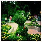 The remainder of our day was spent at Epcot, where agenda item #1 was to take in as much of the Flower and Garden Festival as possible. We browsed leisurely, snapping photos, and stopped in Club Cool so that I could drink approximately six hundred tiny cups of Mezzo Mix. We took a gander at the wares in Mouse Gears, and then decided to make one last circle tour of the World Showcase, taking in the flowers and topiaries. We also had our second Kaki Gori of the weekend, which we enjoyed sitting in a quiet shady spot in the Japan gardens. Before we knew it time was running out, and so we made our way to the front. Oh! We also stopped at Epcot Guest Relations to renew our Annual Passes – it seems to be tradition to do all of our AP business at Epcot – and we did a bit more pin trading before heading out.