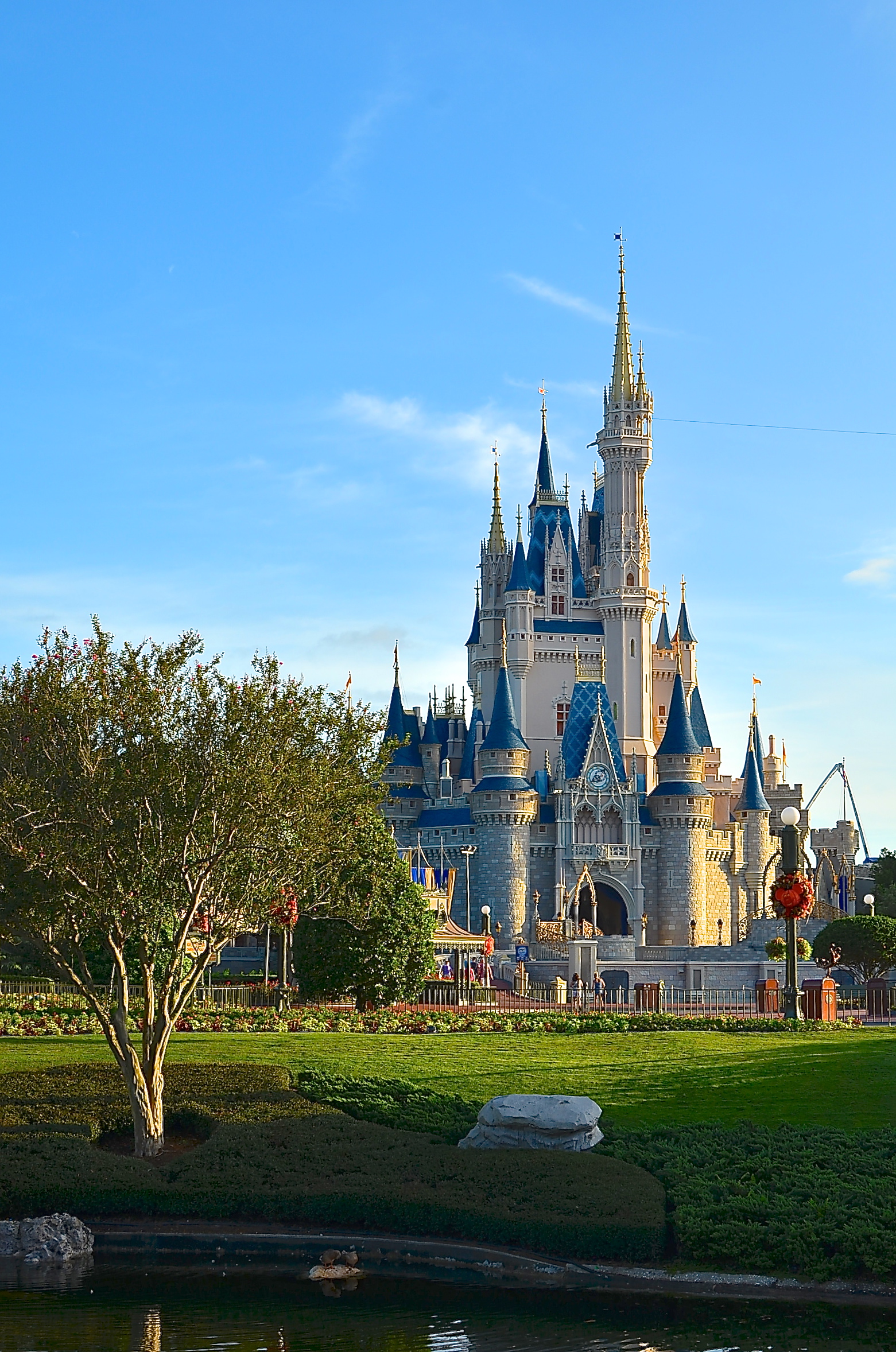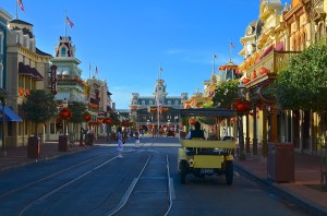 Another day, another early rope-drop wake-up call. We get ready and head out the door around 7:40 for the walk to the MK. It’s a nice morning, but humid again. (Little did I know that later in our trip we’d be praying for the relatively low humidity of these first few days!) We arrive at the MK and head in through the far left gates, and are welcomed by Mouse-hand-clad Cast Members onto a virtually empty Main Street. Even CP is pretty breathtaken by the morning calmness. We snap pictures and have our Photopass pics taken, including some right up at the Castle.