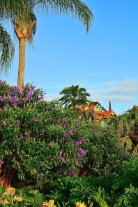 We quickly run away and head into Duffy’s store to browse. A Friendship boat is at the dock, so we hop on for the ride to Germany. We browse the stores there, admire the miniature train, and then head to Mitsukoshi in Japan. CP loves the Keroppi merchandise, and, of course, the Totoro merch – we break protocol and buy a big item before trip’s end, leaving with another Totoro. Then it’s time for a kaki gori break, which is the perfect cooling antidote to the heat and humidity. We eat it at the Katsura Grill, resting our feet and people watching while we rejuvenate ourselves. Feeling better, we make the walk through to France, stopping at the perfume store where a lady named Lulu shows us the new Givenchy scents. I’m almost tempted, but end up not pulling the trigger. We continue on to the UK stores, and then walk through Canada and back out toward the entrance, where we stop at the Pin Trading store. Totally wearing our dorkiness on our sleeves, we stop to meet Epcot’s Stitch, who is awesome and somehow conveys to me that he wants cake. His poses are terrific – claws up! Surfer pose! We manage to squeeze in a few Photopass pictures at the front, and then happy, we head back to the monorail for some downtime at the Contemporary.