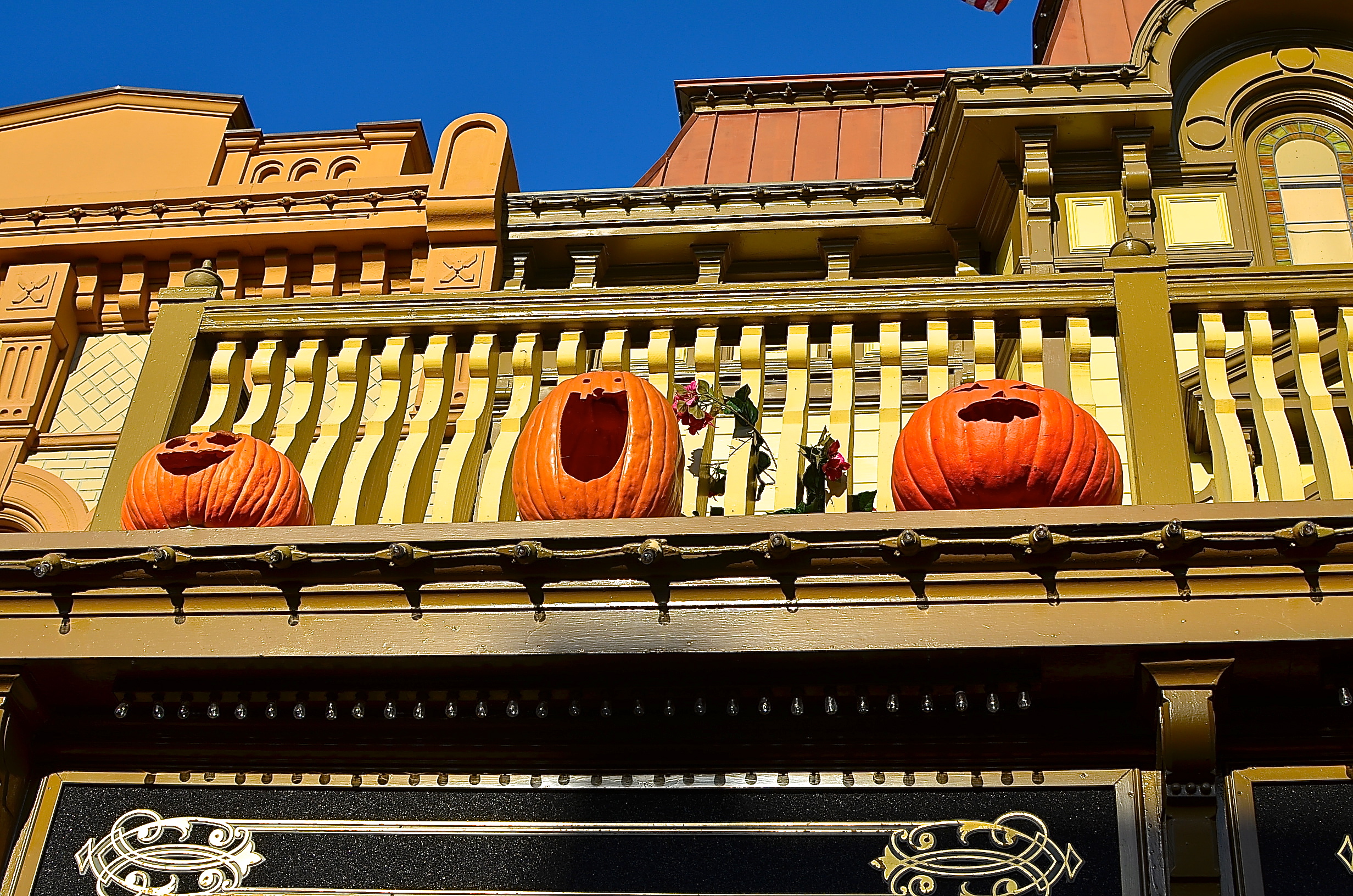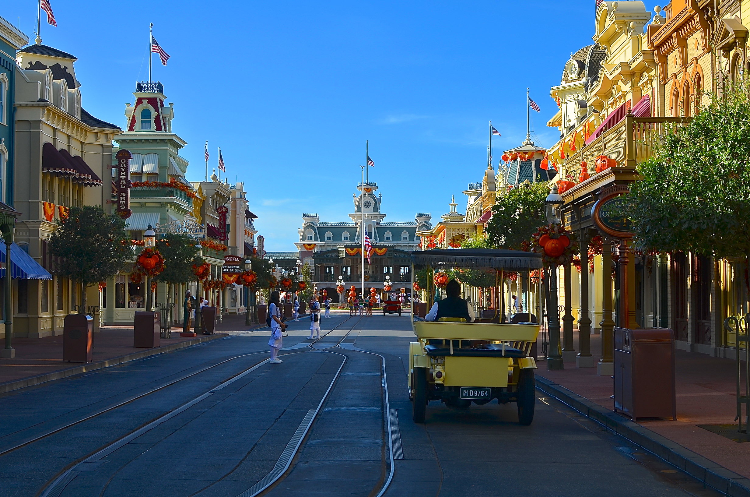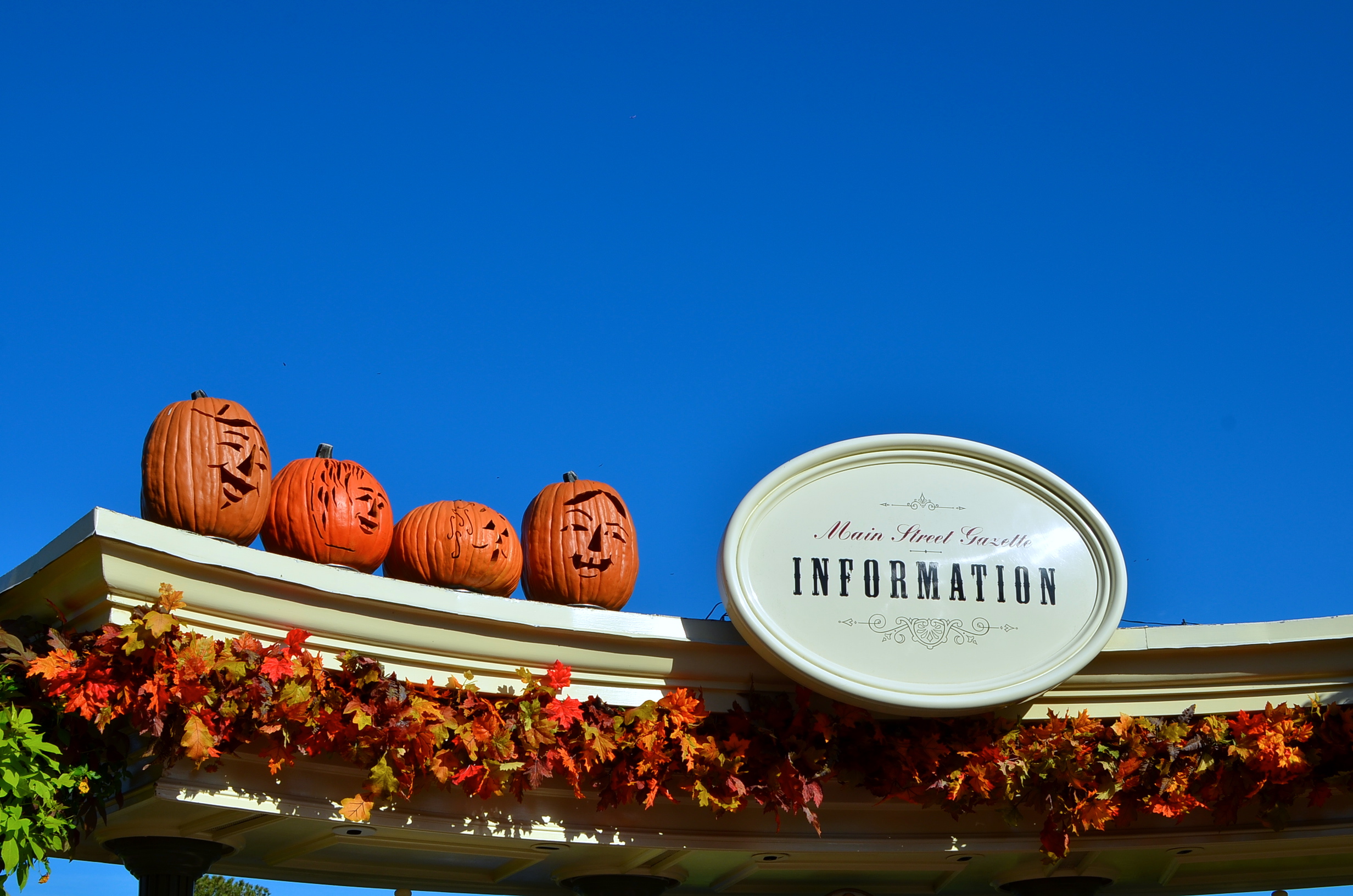 We head back up Main Street, pin trading all the way. It’s still quiet, and the Halloween decorations are lovely: