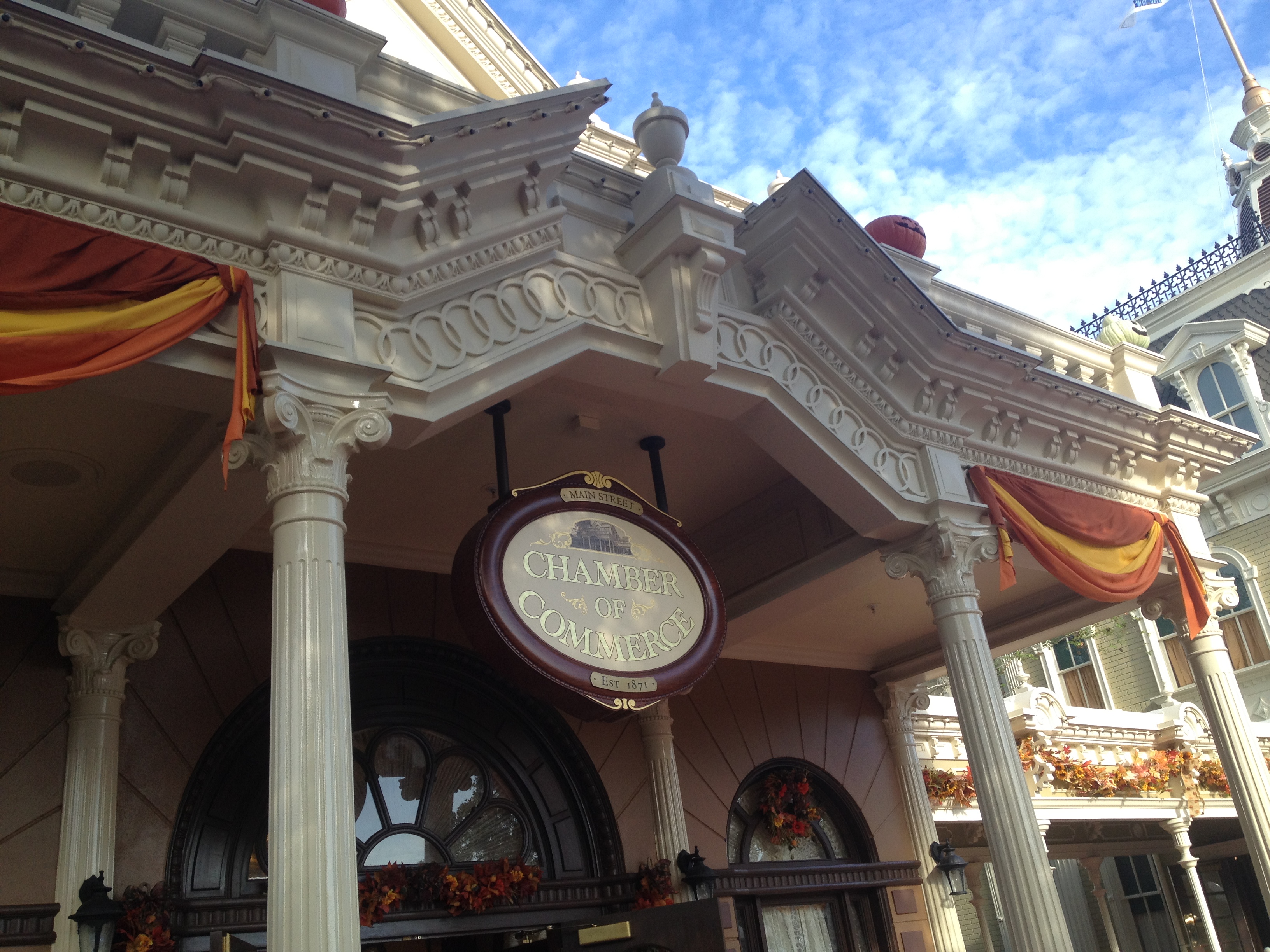 A little after 9am we meet our guide, Kate. Our group has 16, but it’s a sedate crowd. Kate doesn’t seem particularly lively, either, but I hope she’ll pick up steam as the tour progresses. We begin with a walk down Main Street, dodging the rope drop crowds, and then we dart down Center Street, where we get our history lesson and pop quiz about the four Disney keys: safety, courtesy, show, and efficiency. Kate isn’t the most compelling speaker, and her habit of spontaneously yawning isn’t helping. Neither is the degree to which she’s easily distracted by passers by, so she repeats herself and trails off a lot.