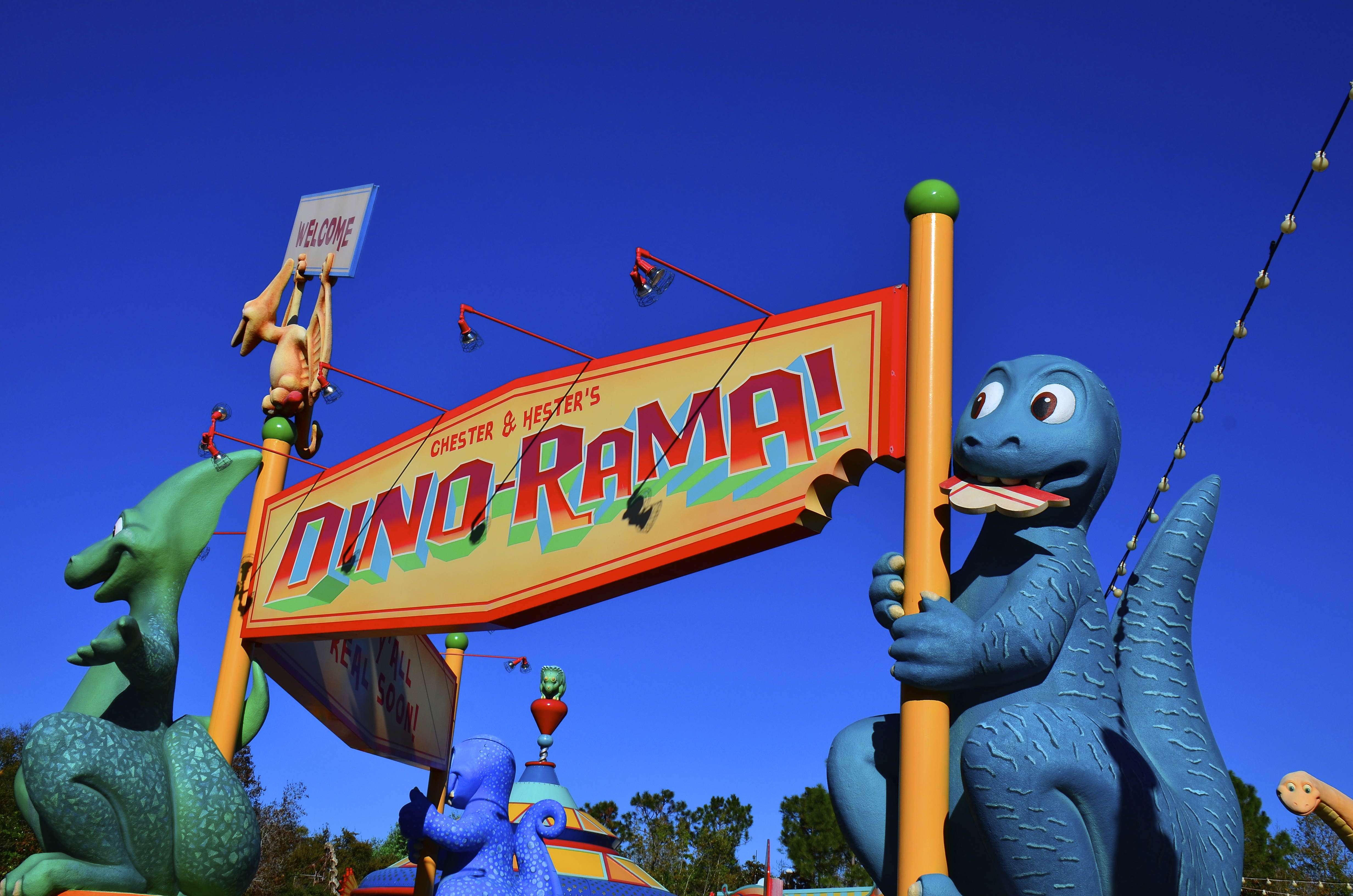 If memory serves we arrived just a few minutes after rope drop, and while it was definitely busier than we’d seen it in September/December, it was nowhere near packed. We ambled in leisurely and stopped to admire and photograph the birds, browsed some shops to pin trade, and headed back to Dino Land to take pictures. Oddly, neither of us were in the mood to ride anything, so we mostly soaked in the wonderful sunshine and did some people watching before the 10:30am Flights of Wonder show. Since I can’t give you lots of details, how about lots of pictures?