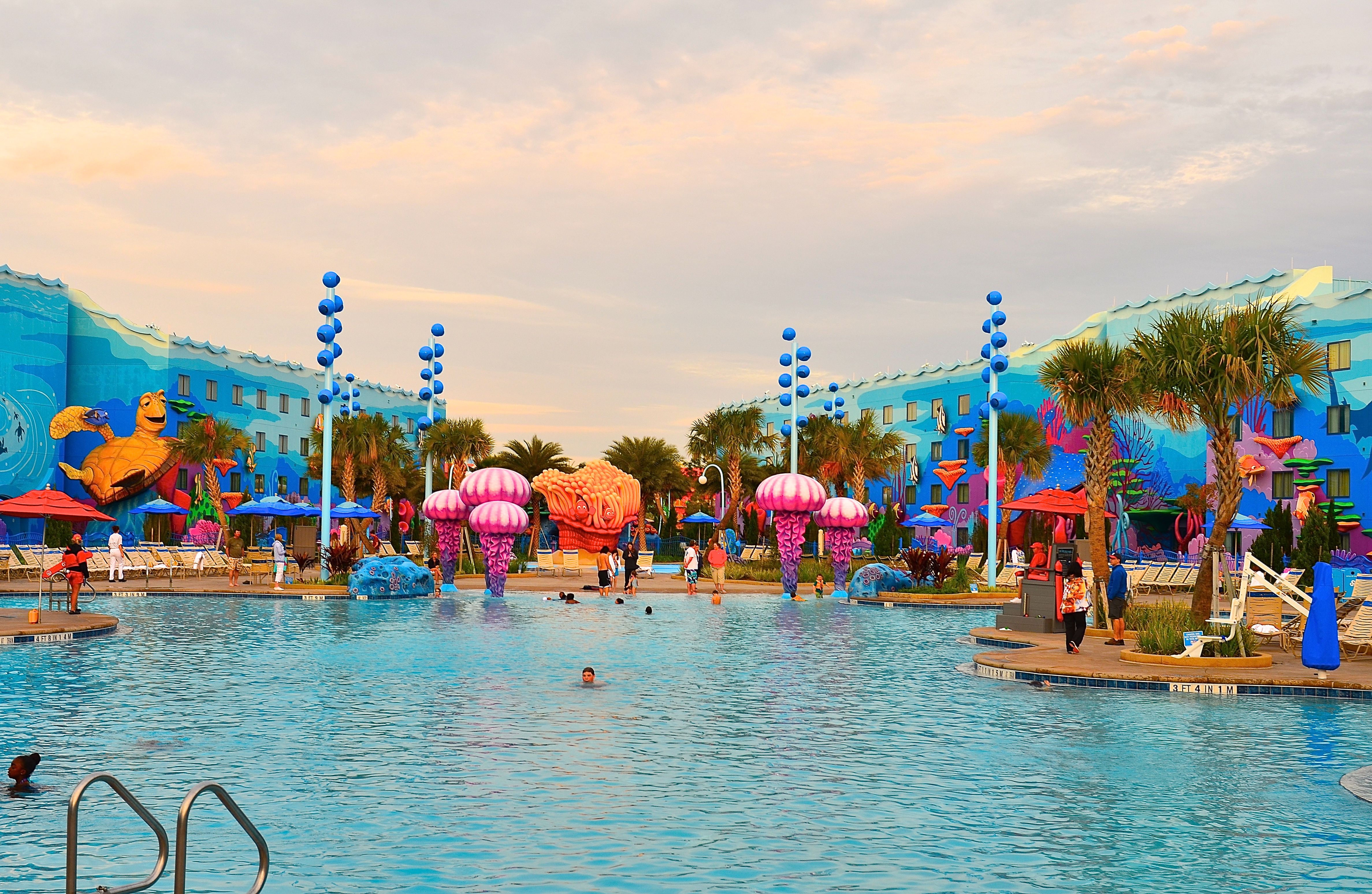 This was feeling a bit too similar to the now infamous corn dog nugget incident of the previous month, and neither of us was feeling all that great. What can I say – we’re delicate flowers. After sleeping poorly at my grandparents’ rental (I think the mattresses there were purchased at Sam’s Club and were AWFUL) and now feeling a little churropated, we elected to have a more restful evening of pin trading and resort hopping. On the docket? Disney’s new(ish) Art of Animation Resort.