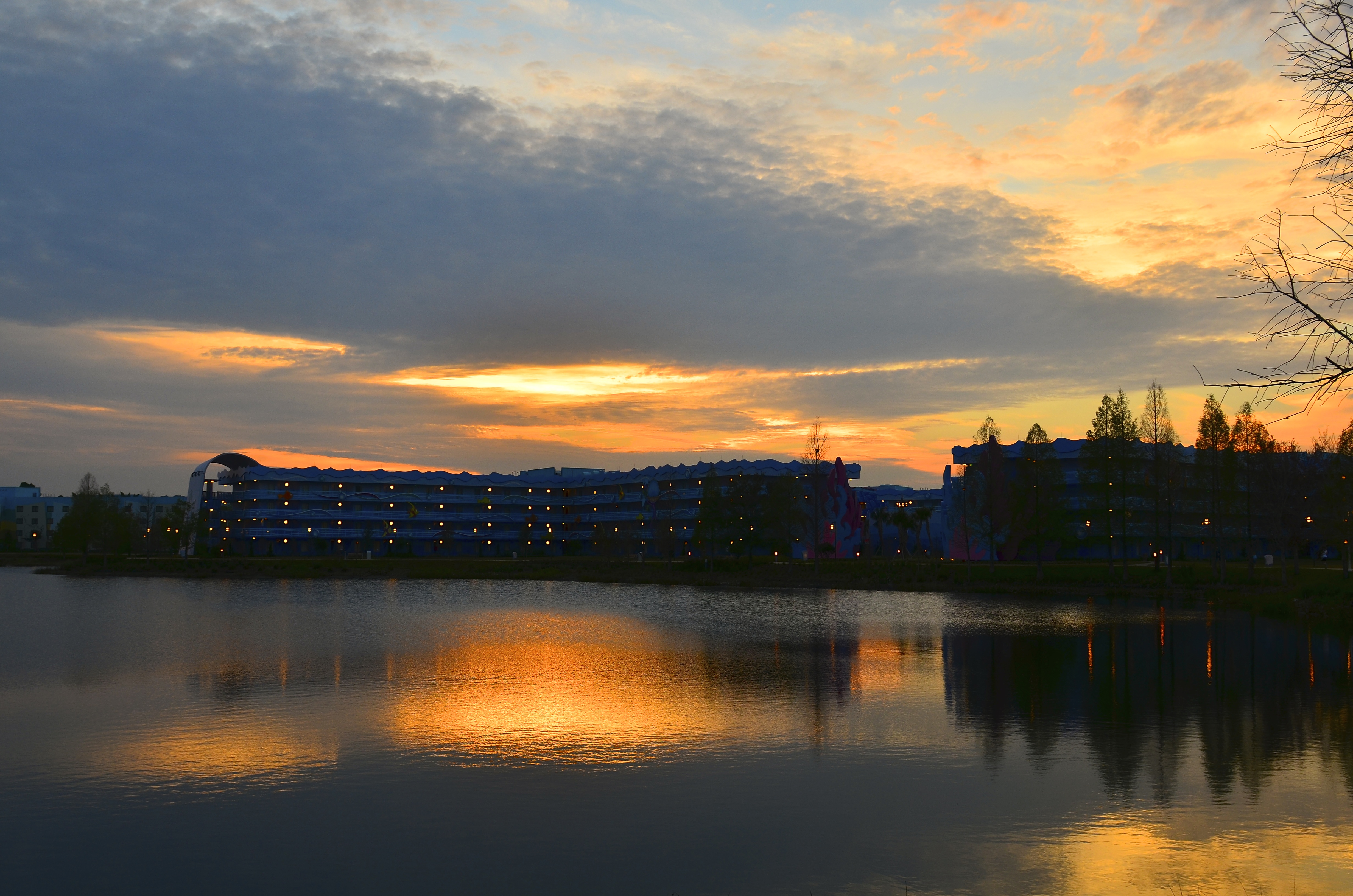 The walking was definitely helping with our churropation, so we decided to keep on walking past Art of Animation and over to Pop Century, another resort neither of us had ever seen. I liked Pop far less than AofA, but there were some nice sunset pictures to be had.