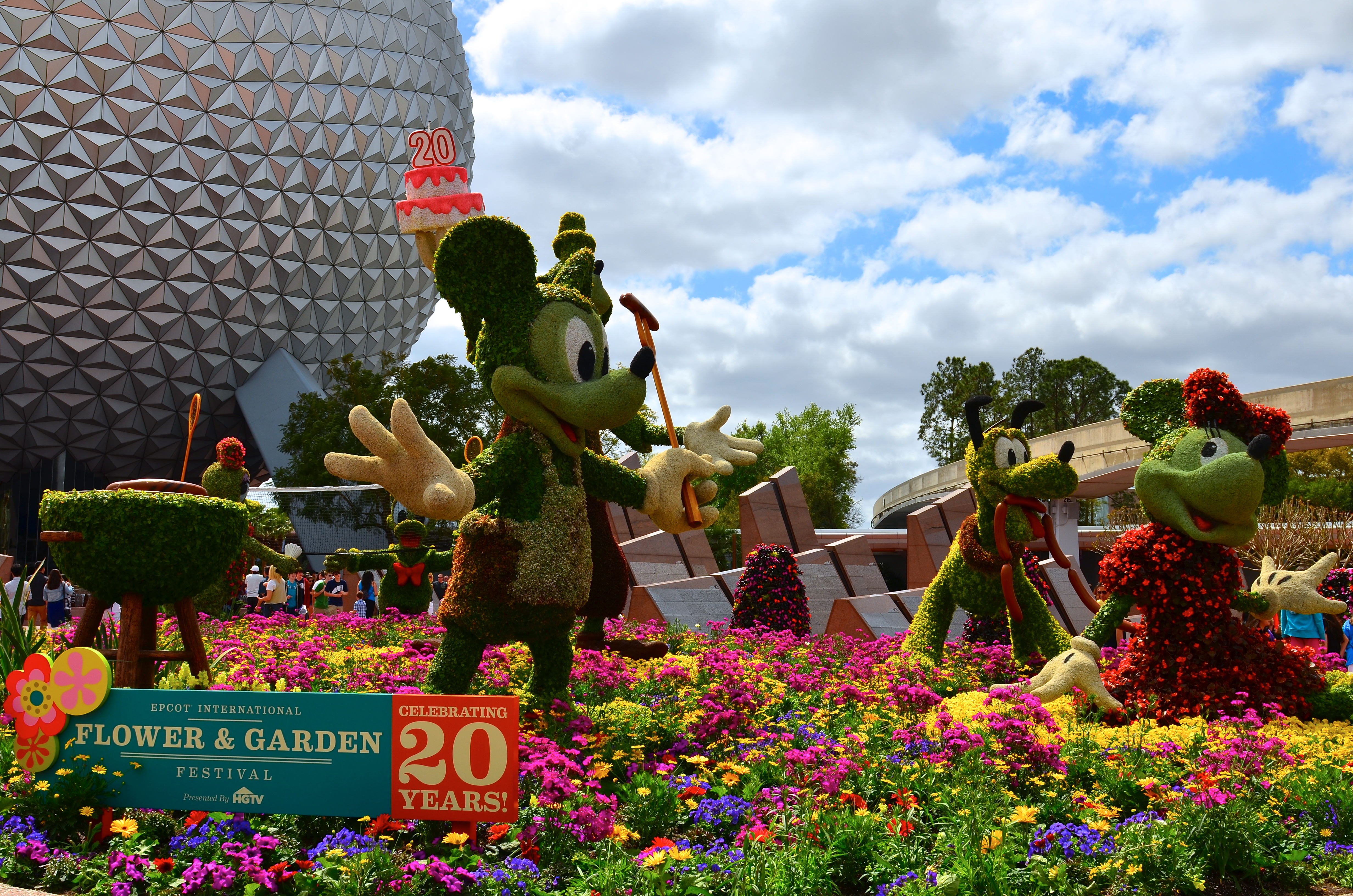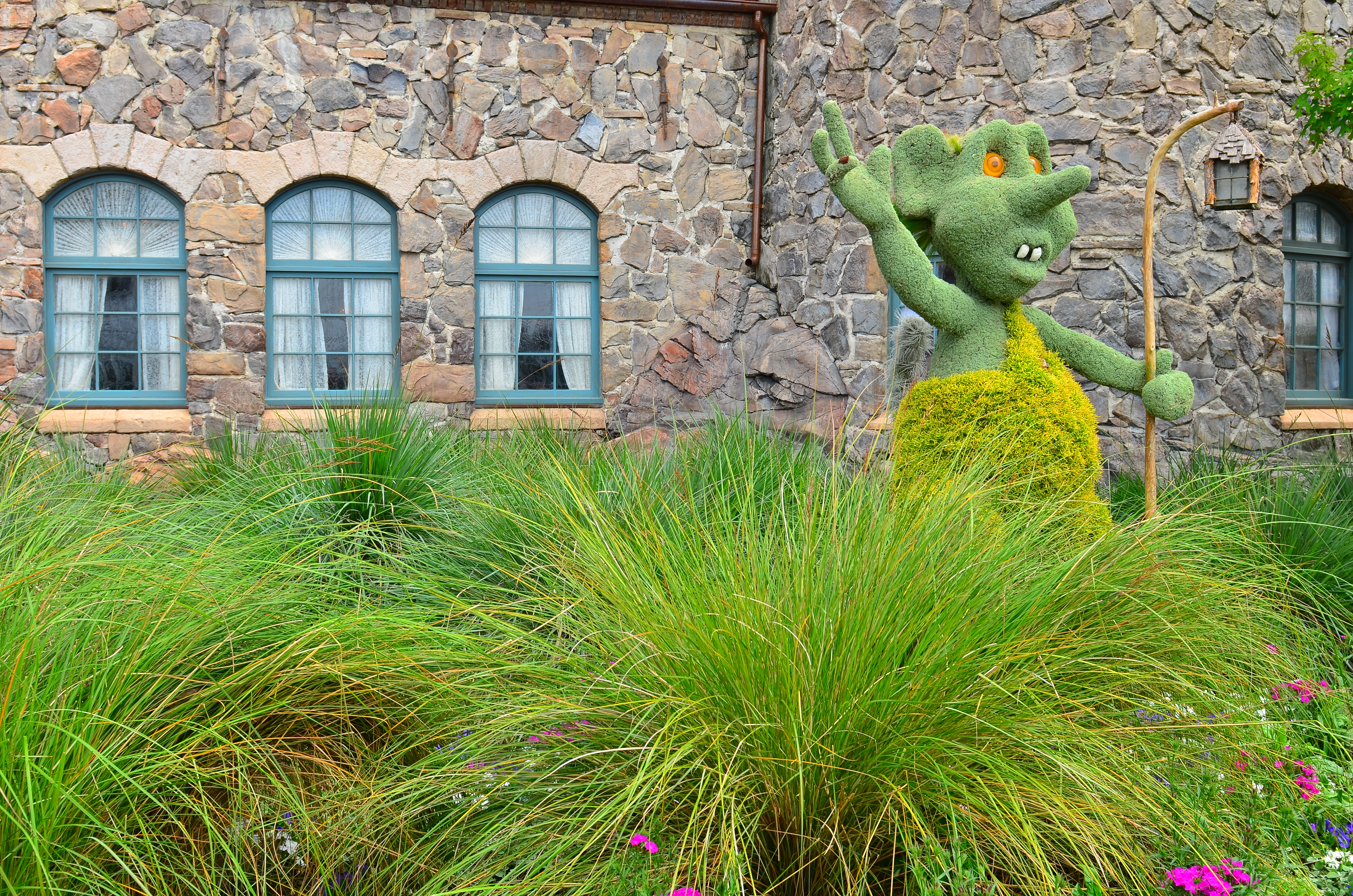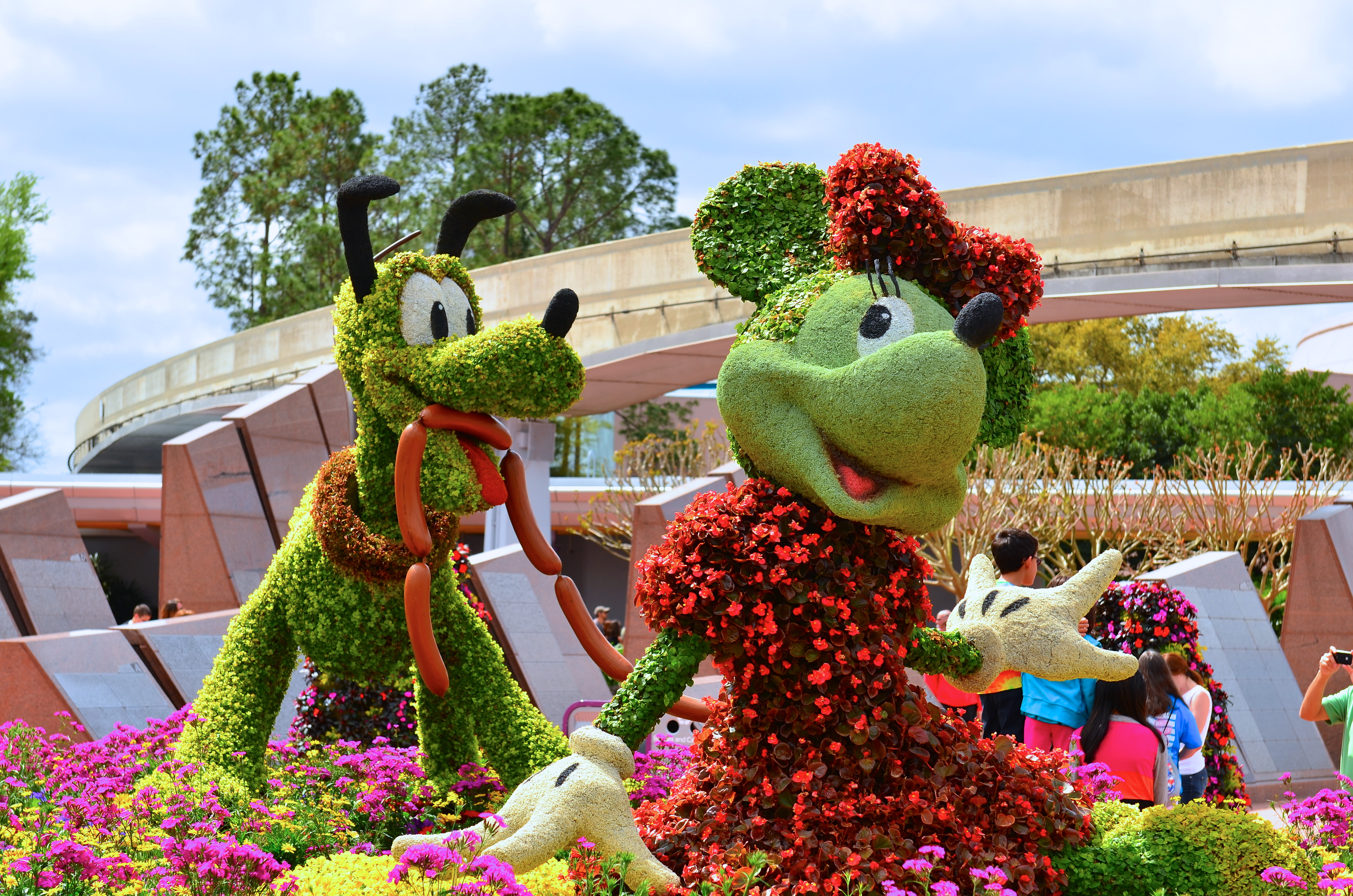 Why yes, we were off to Epcot! Since we had atypically taken the bus that morning (it’s coming back to me – cereal and fruit and iced coffee from the Rix Cafe, bus from the main bus stop – I’VE STILL GOT IT!), we hopped on the Express monorail and were pleased to find an Epcot monorail waiting for us. I love the monorail trip to Epcot, especially the end where you circumnavigate the park from above. My love/hate relationship with Epcot is mostly love, and Flower and Garden is probably my favorite time during which to visit Epcot. Here, let me drown you in some photos: