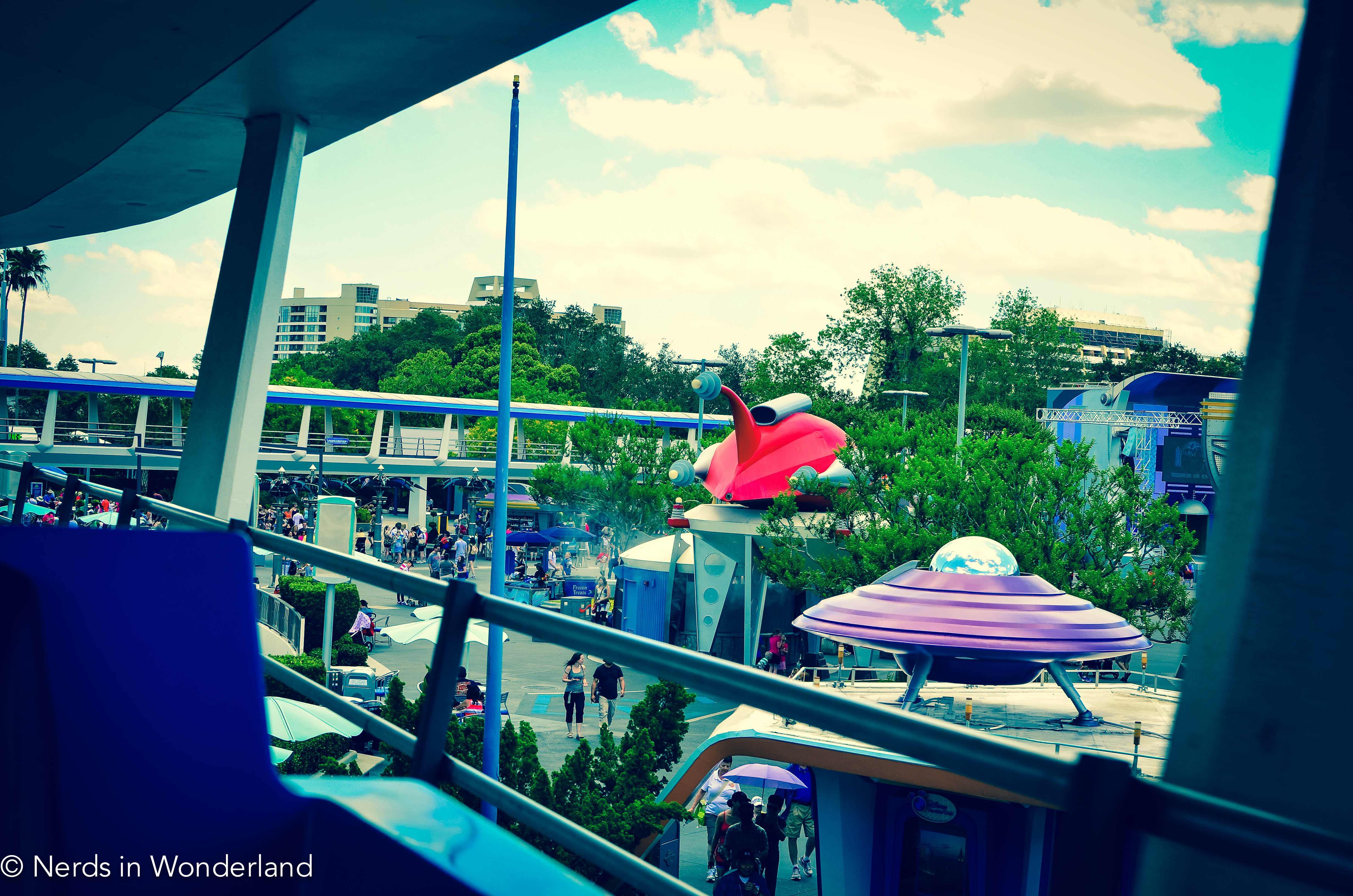 We really didn’t have a Magic Kingdom agenda today, other than to browse, pin trade, and soak up the atmosphere in hopes that the good feelings would carry us through the summer and to our August trip. The weather was perfect, the crowds were low, and we enjoyed ambling about. Of course, it wouldn’t be a trip to the Magic Kingdom without a ride on the TTA: