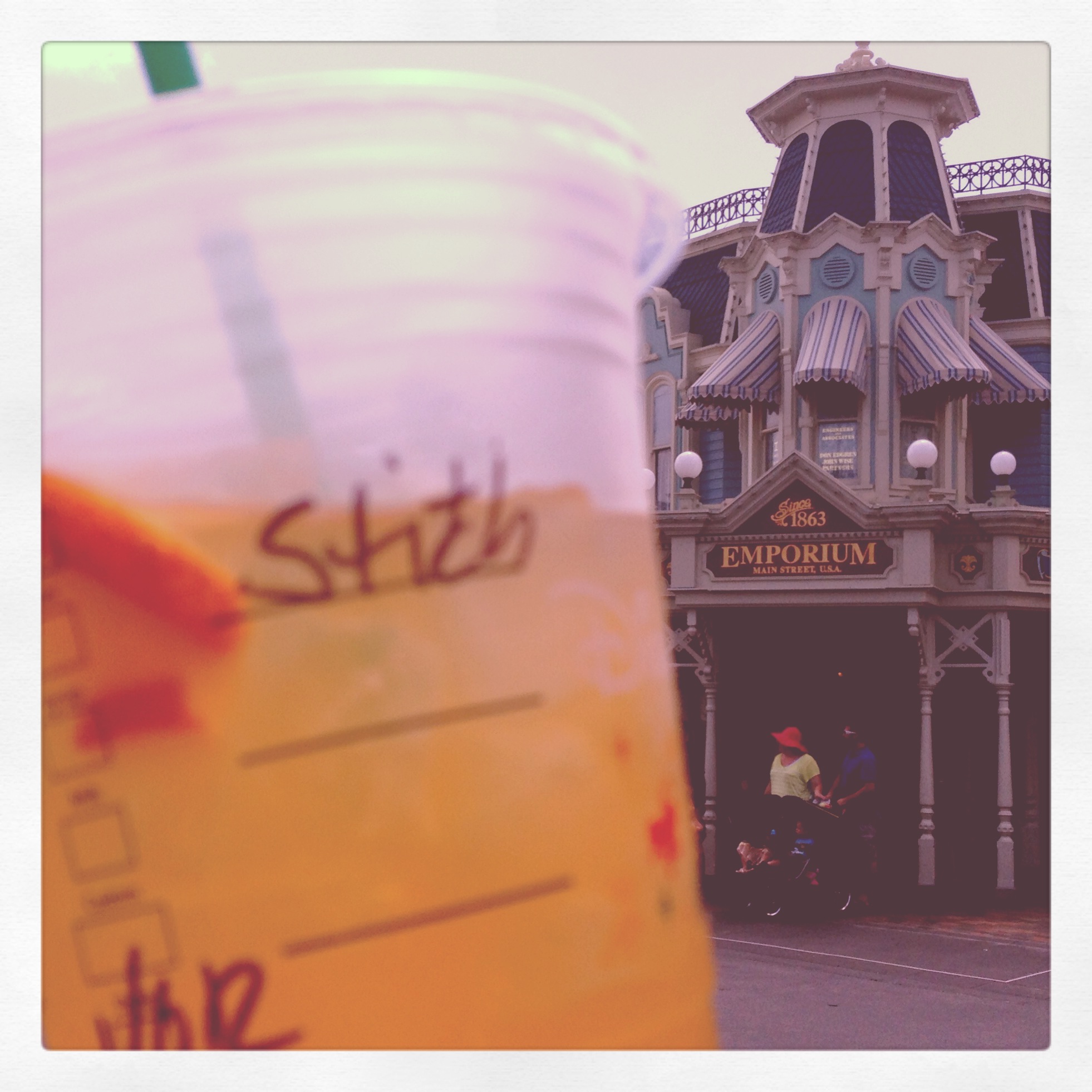 Back at the Polynesian, we napped, checked in with e-mail and Twitter, and plotted our plans for the rest of the day. I was also trying to get rid of a nasty headache, so I thought maybe some additional caffeine would help. We both had a craving for Starbucks, and were about to drive off-property when we remembered: we could just take the monorail to the Magic Kingdom! And so that’s exactly what we did: went into MK, quickly checked a few Main Street stores for pins; grabbed Valencia refreshers, and headed back to the Poly. All in less time than it would take to drive to the Starbucks on 535. We were thrilled.
